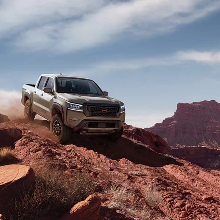 The Frontier midsize pickup has the tech and rugged durability to help take your adventures to new heights.