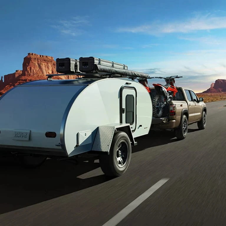Towing used to be an intimidating task. Now it’s DIY and simple, thanks to Frontier’s smart towing tech and fully boxed ladder frame — multiple available features that help you tow more confidently, safely, and, ultimately, more often.