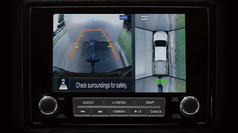 Help keep your pride and rims intact on and off the road. The available Intelligent Around View Monitor helps make parking easier. Get a virtual composite 360° bird’s-eye view of your Frontier, or you can get visual and audible alerts from Moving Object Detection if something is detected in your path or gets too close.