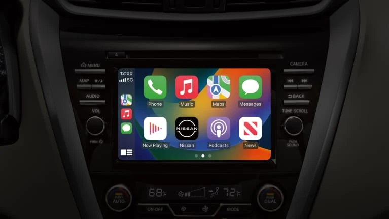 People to see? Places to be? Just ask Siri®. Equipped with Siri voice control, Apple CarPlay® brings on board to your Murano your contacts, favorite messaging apps, Apple Music® playlists, Apple Maps, and more. Simply plug in your compatible iPhone® and go.