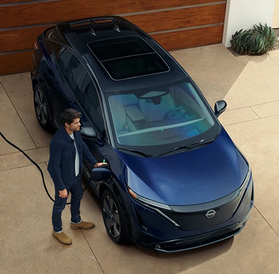 1 The Nissan lithium-ion battery and battery capacity limited warranty includes coverage for defects in materials or workmanship for 96 months/100,000 miles (whichever occurs first) as well as protection against capacity loss below 9 segments of capacity (out of 12) as shown on the vehicle’s capacity gauge for a period of 96 months/100,000 miles (whichever occurs first). For complete information concerning coverage, conditions, limitations, and exclusions, see your Nissan dealer and read the applicable warranty information booklet for your vehicle. 2 The incentives referenced are for informational purposes only. This information does not constitute tax or legal advice. All persons considering use of available incentives and additional perks should consult with their own tax or legal professional to determine eligibility, specific amount of incentives available, if any, and further details. The incentives and additional perks are not within Nissan’s control and are subject to change without notice. Interested parties should confirm the accuracy of the information before relying on it to make a purchase. Residency restrictions may apply. 3 Roadside assistance coverage period varies by model year and model. For complete information concerning warranty coverage, conditions and exclusions, see your Nissan dealer and read the warranty information booklet for the model year and model. 4 Charging time and capacity may vary based on power source, ambient temperature, battery temperature, condition, age, and use of vehicle accessories while charging. For Level 1 home charging, use only a 110-120 volt, 15-amp dedicated outlet for charging. For Level 2 home charging, use only a 240 volt charging dock on a dedicated outlet for charging. See Customer Disclosure Form for details. Routine Maintenance: Read a sample Security+Plus contract at your dealer, and read your actual service contract because its terms, conditions, exclusions, and limitations control. In Florida, Security+Plus is backed by Nissan Extended Services North America, Inc., P.O. Box 685004, Franklin, TN 37068-5004. License #60128. Security+Plus® is a trademark of Nissan North America, Inc. EV Lithium Battery Inspection: Available at participating Nissan dealers. Each dealer is independently operated. Availability of services or amenities may vary by dealer. Restrictions apply. Contact dealer for details. EV Multi-Point Inspection: Available at participating Nissan dealers. Each dealer is independently operated. Availability of services or amenities may vary by dealer. Restrictions apply. Contact dealer for details. 5 Public charging networks are provided by independent companies and are subject to their own respective policies, terms, and/or conditions, and are not within Nissan’s control. Should such independent companies terminate or restrict service or features, service or features may be suspended or terminated without notice or with no liability to Nissan or its partners or agents. Nissan is not responsible for associated costs (including additional equipment or equipment replacements/upgrades, if available) or other third party changes that may be required for connectivity with a charger station. Availability of charging stations not guaranteed. 6 Not a Nissan product. Some chargers may not be compatible with your Nissan ARIYA. Contact charger manufacturer before purchase for information on compatibility and warranty. Nissan does not warrant and is not responsible for loss, including consequential, incidental, or other damages, caused by charger defects, charger incompatibility, or installation services. 7 A Nissan NACS Adapter Kit is required to access NACS charging stations, including compatible Tesla Supercharger. You must only use an adapter provided by Nissan or purchased from a U.S. Nissan Dealership (“Compliant Adapter”). [Nissan deems a Compliant Adapter as the only compatible adapter for Nissan EVs.] Use of an adapter that is not a Compliant Adapter is strictly prohibited. 8 MyNISSAN app shown for illustrative purposes only. Features of MyNISSAN app may vary by model and model year. 9 8 Billion Miles driven by LEAF owners globally since 2010. 10 See www.nissanusa.com/connect/legal for more NissanConnect features/services information.