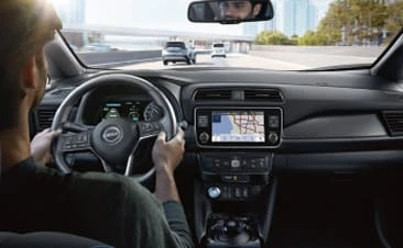 Available ProPILOT Assist on the Nissan LEAF helps enhance your driving experience by maintaining a set distance from the car ahead and adapting to traffic flow.